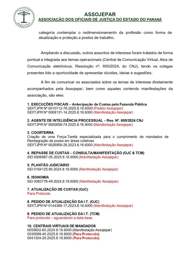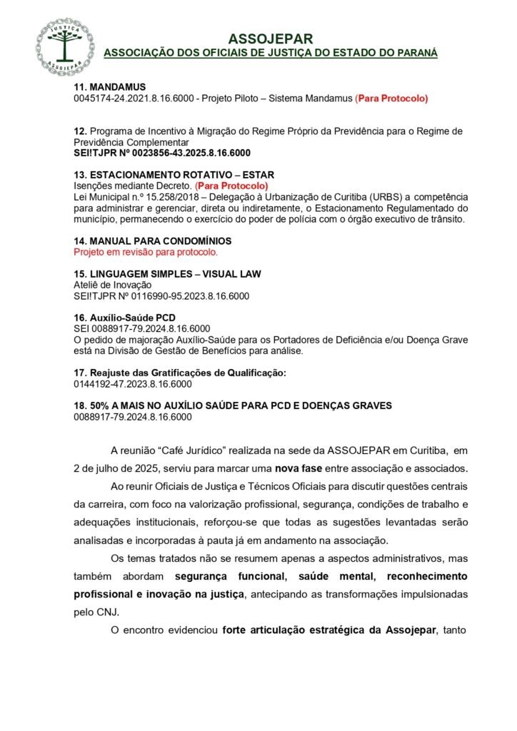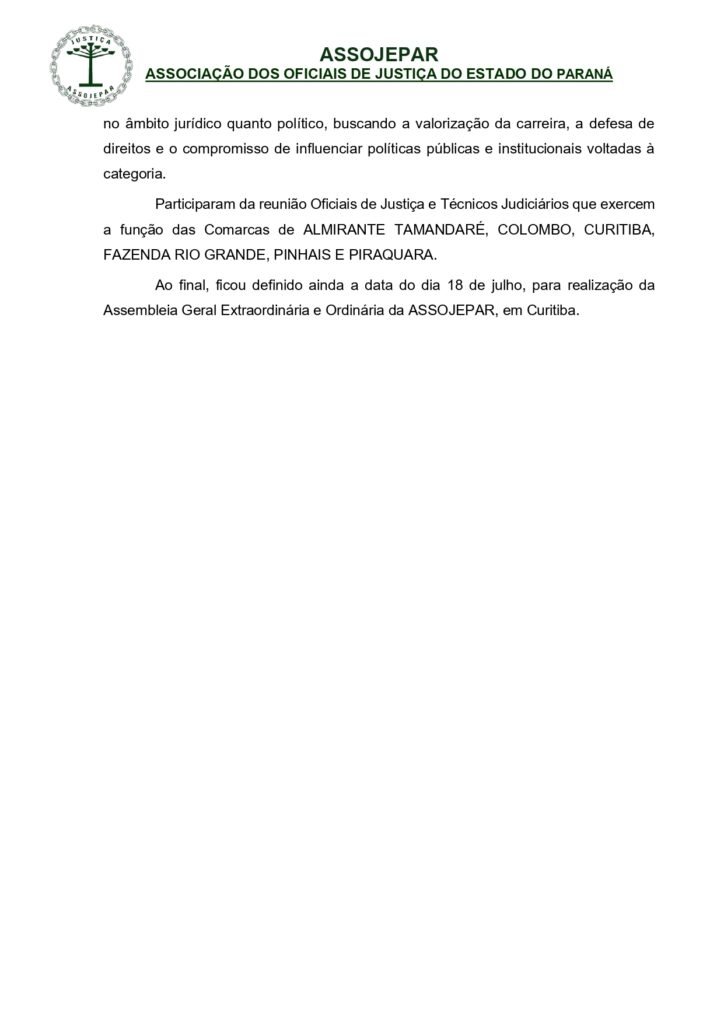 NOTA INFORMATIVA – Nova composição da Diretoria Executiva da ASSOJEPAR